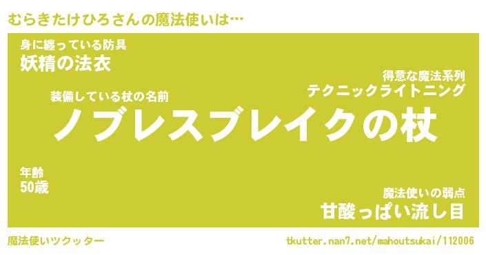| 胡散臭い通販商品みたいなあだ名 | 『モテモテ間違いなし水晶球…その名も「むらきたけひろ」』 |