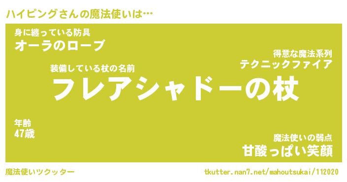| ヒーロー風カッコイイあだ名 | 『スーパーハイピング』『黄金騎士ハイ』 |