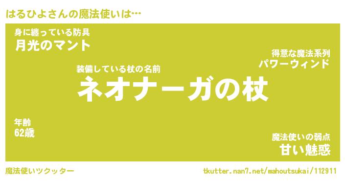 | ファンタジー風あだ名 | 『ハルフェル』『エターナルハルヒヨー』 |