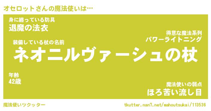 | ファンタジー風あだ名 | 『オセフェル』『エターナルオセロットー』 |