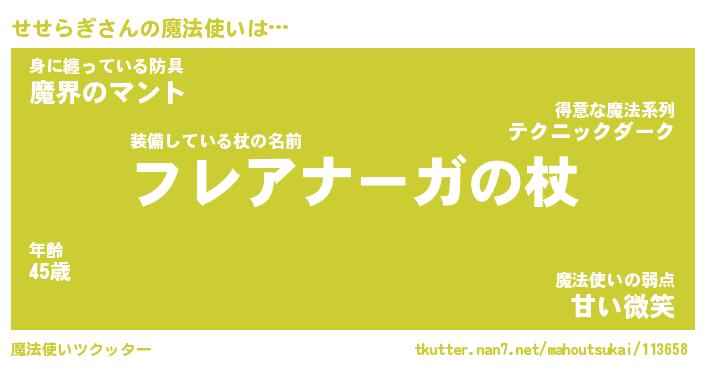 | ヒーロー風カッコイイあだ名 | 『スーパーセセラギ』『魔戒騎士セセ』 |