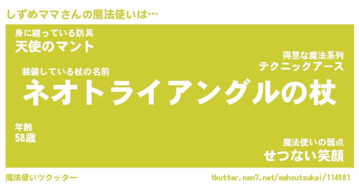 | ヒーロー風カッコイイあだ名 | 『スーパーシズメママ』『銀牙騎士シズ』 |