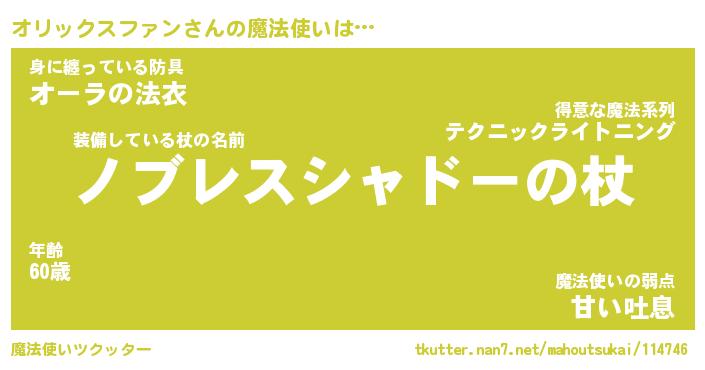 意味不明あだ名 | 『ペロリンオリックスファン』 |