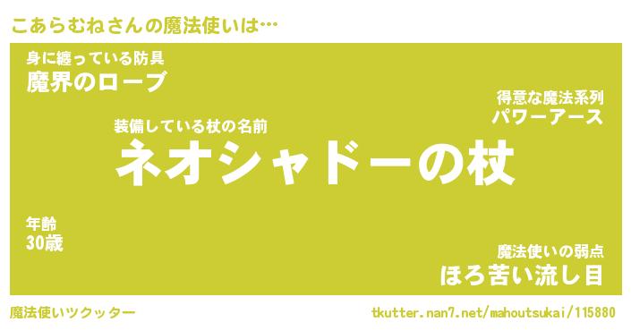 | 伝説のあだ名 | 『不死鳥の竜騎士こあらむね』 |
