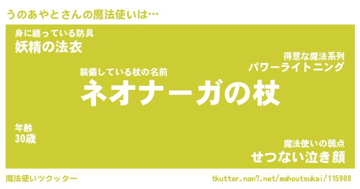 ファンタジー風あだ名 | 『ウノフェル』『エターナルウノアヤトー』 |