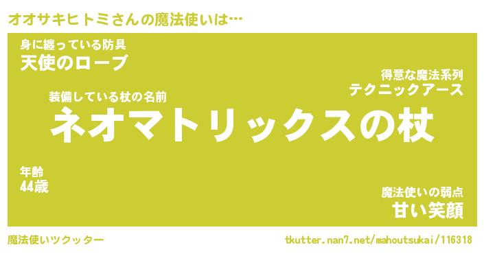 | 欧米人風あだ名 | 『マイケルオオサキヒトミ』 |