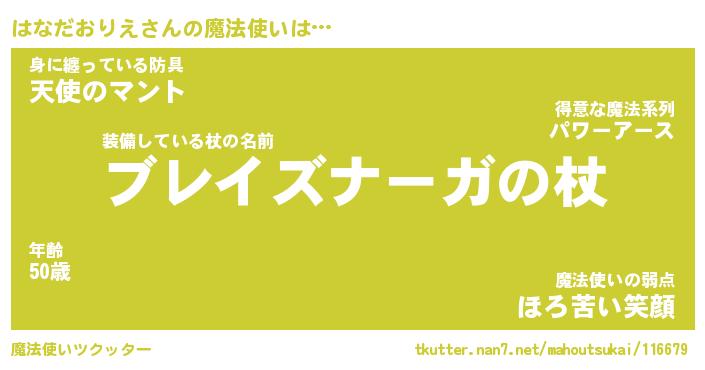| ヒーロー風カッコイイあだ名 | 『スーパーハナダオリエ』『銀牙騎士ハナ』 |