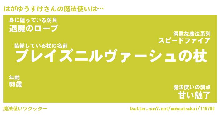 | ファンタジー風あだ名 | 『ハガフェル』『ファントムハガス』 |