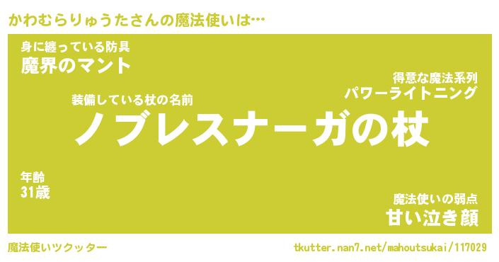 | 男性向けラノベタイトル風あだ名 | 『カワムラリュウタアートオンライン』 |