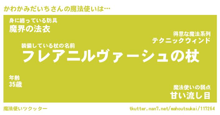 | 胡散臭い通販商品みたいなあだ名 | 『必ず成功する霊験あらたかなお札…その名も「かわかみだいち」』 |