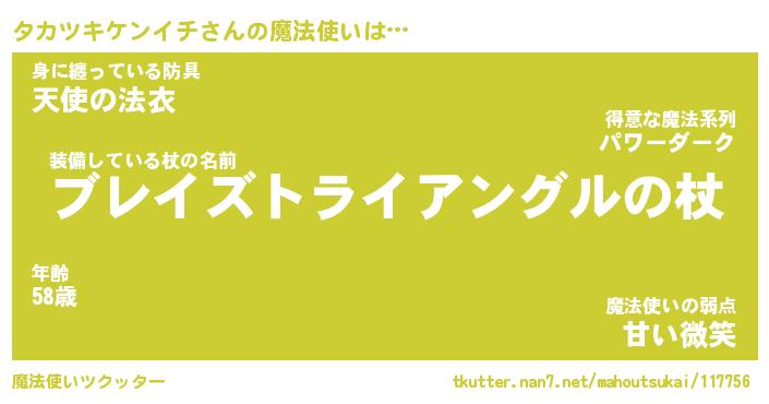 | 男性向けラノベタイトル風あだ名 | 『タカツキケンイチの憂鬱』 |