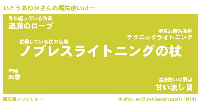 | ヒーロー風カッコイイあだ名 | 『スーパーイトウアユカ』『天弓騎士イト』 |