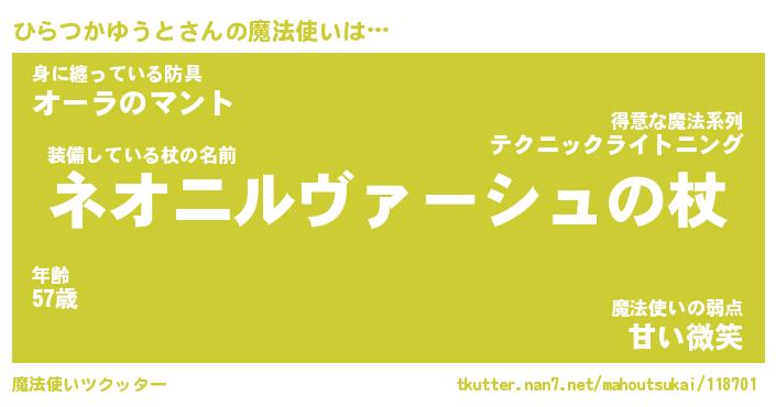 | ツイッター | ひらつかゆうとさんのツイッターID『katatsumuri_nyan』 |