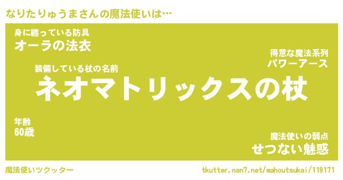 | 男性向けラノベタイトル風あだ名 | 『なりたりゅうまの憂鬱』 |