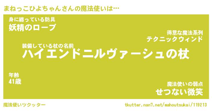 | 男性向けラノベタイトル風あだ名 | 『マネッコヒヨチャンアートオンライン』 |