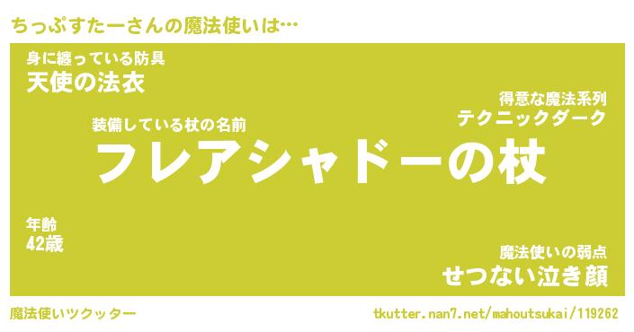 | 女子向けラノベタイトル風あだ名 | 『(仮)ちっぷすたーのやんごとなき事情』 |
