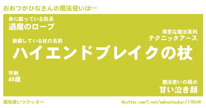 | 男性向けラノベタイトル風あだ名 | 『オオツカヒナアートオンライン』 |
