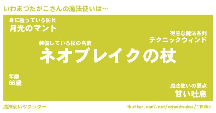 | 肩書あだ名 | 『いわまつたかこ店長』 |