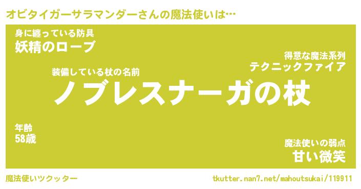 | 男性向けラノベタイトル風あだ名 | 『オビタイガーサラマンダーアートオンライン』 |