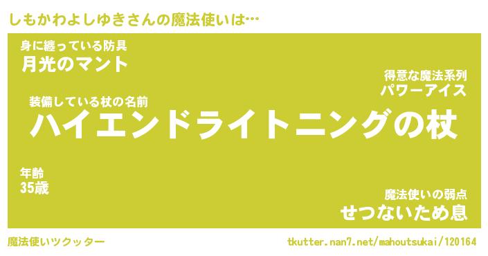 | 伝説のあだ名 | 『封印されし竜騎士しもかわよしゆき』 |
