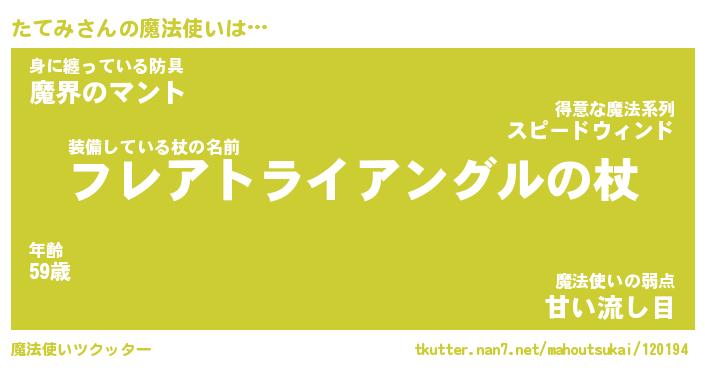 | ファンタジー風あだ名 | 『タテフェル』『エターナルタテミー』 |
