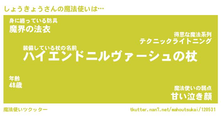 | ヒーロー風カッコイイあだ名 | 『スーパーショウキョウ』『暗黒騎士ショ』 |