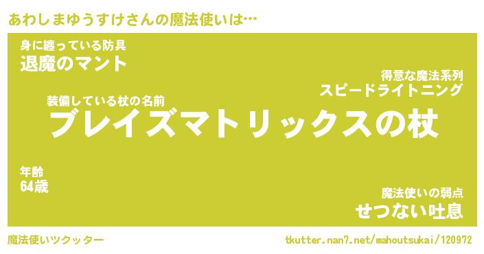 | 男性向けラノベタイトル風あだ名 | 『あわしまゆうすけの憂鬱』 |