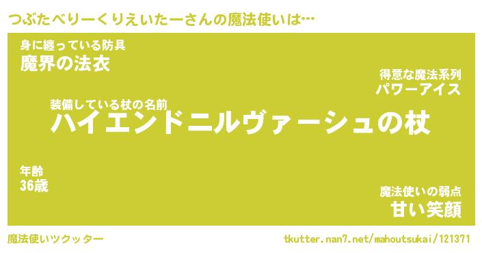 | 男性向けラノベタイトル風あだ名 | 『ツブタベリークリエイターアートオンライン』 |