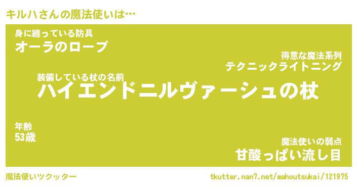 | ヒーロー風カッコイイあだ名 | 『スーパーキルハ』『ウルトラキルハマン』 |