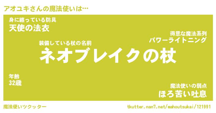 | ファンタジー風あだ名 | 『アオフェル』『エターナルアオユキー』 |