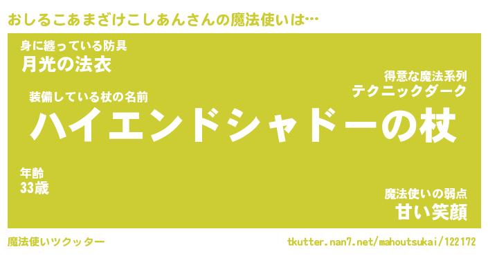 | 伝説のあだ名 | 『封印されし竜騎士おしるこあまざけこしあん』 |