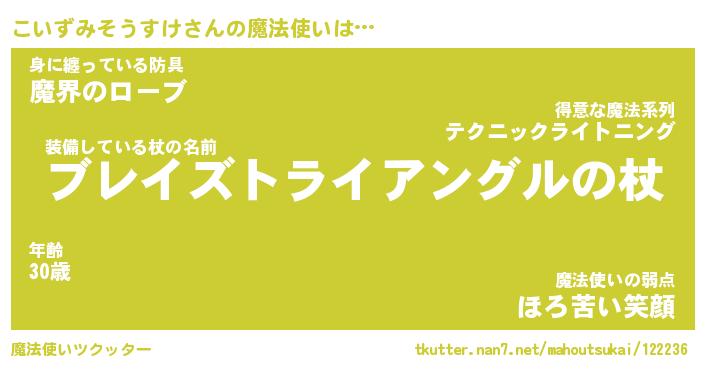 | 胡散臭い通販商品みたいなあだ名 | 『モテモテ間違いなし霊験あらたかなお札…その名も「こいずみそうすけ」』 |