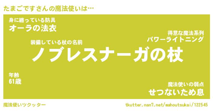 | ファンタジー風あだ名 | 『タマフェル』『エターナルタマゴデスー』 |