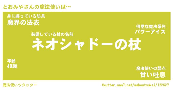 | ファンタジー風あだ名 | 『トオフェル』『エターナルトオミヤー』 |