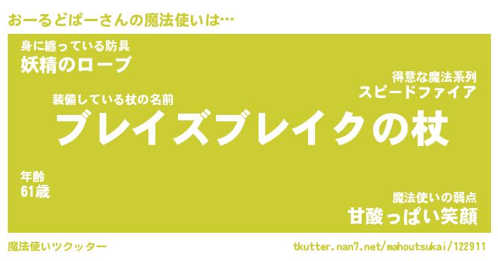 | 男性向けラノベタイトル風あだ名 | 『おーるどぱーの憂鬱』 |