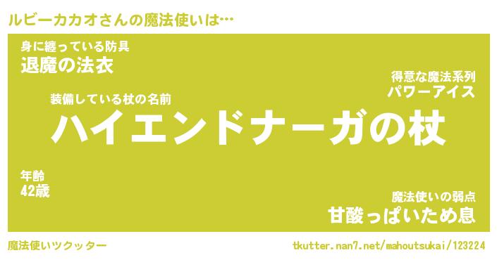 | 男性向けラノベタイトル風あだ名 | 『ルビーカカオアートオンライン』 |
