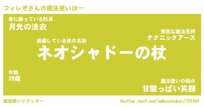 | 男性向けラノベタイトル風あだ名 | 『フィレオの憂鬱』 |