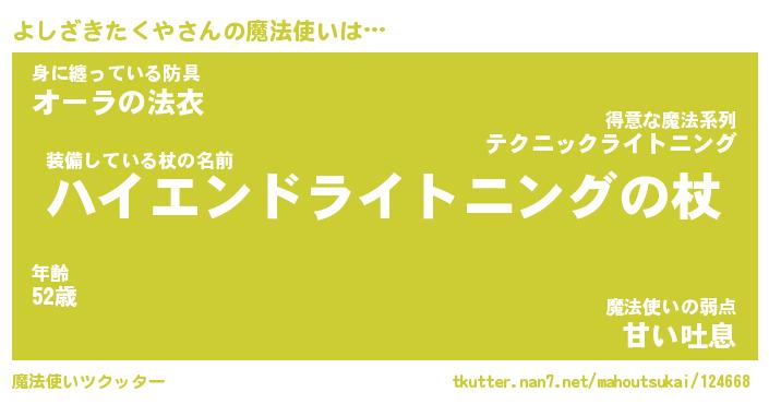 | 伝説のあだ名 | 『封印されし竜騎士よしざきたくや』 |