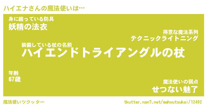 | ファンタジー風あだ名 | 『ハイフェル』『エターナルハイエナー』 |