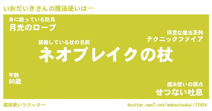 | 伝説のあだ名 | 『不死鳥の傭兵いおだいき』 |