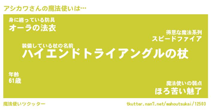 | ファンタジー風あだ名 | 『アシフェル』『エターナルアシカワー』 |