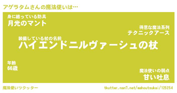 | ファンタジー風あだ名 | 『アゲフェル』『エターナルアゲラタムー』 |