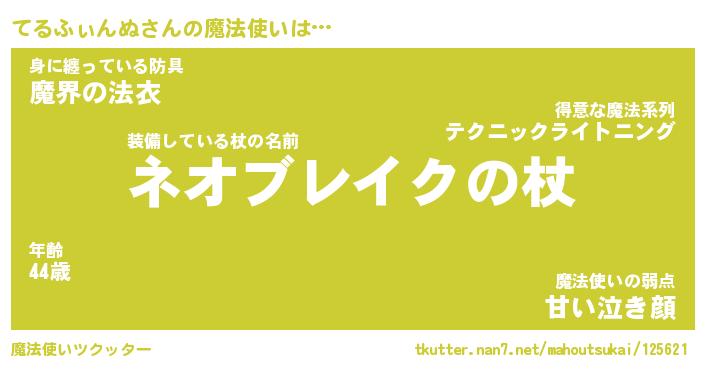 | 男性向けラノベタイトル風あだ名 | 『てるふぃんぬの憂鬱』 |