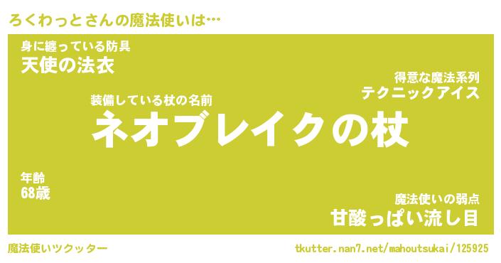 | ファンタジー風あだ名 | 『ロクフェル』『エターナルロクワットー』 |