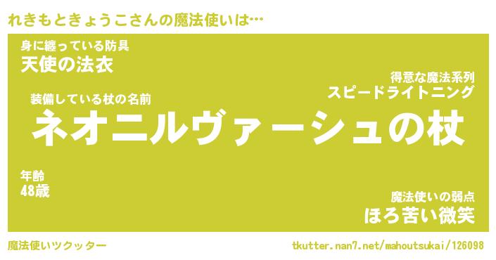 | 肩書あだ名 | 『れきもときょうこ御曹司』 |