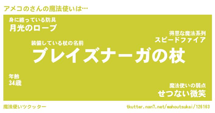 | ファンタジー風あだ名 | 『アメフェル』『エターナルアメコノー』 |