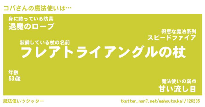 | ファンタジー風あだ名 | 『コパフェル』『エターナルコパー』 |