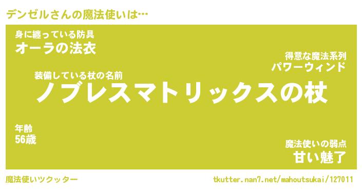 | 男性向けラノベタイトル風あだ名 | 『デンゼルアートオンライン』 |