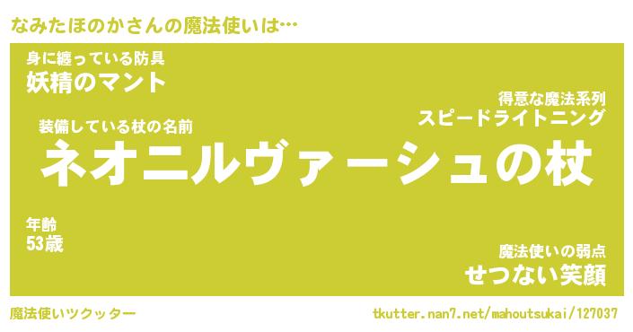 | ツイッター | なみたほのかさんのツイッターID『masyumaro_nyan』 |
