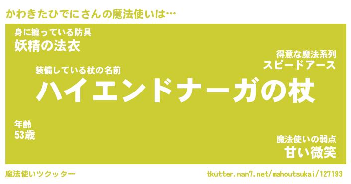 | 男性向けラノベタイトル風あだ名 | 『カワキタヒデニアートオンライン』 |